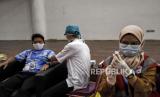 Sejumlah atlet dan ofisial dari berbagai cabang olahraga disuntik vaksin Covid-19 di Sport Jabar Arcamanik, Jalan Pacuan Kuda, Kota Bandung, Senin (5/4). Sedikitnya 800 atlet dan ofisial Jawa Barat yang akan berlaga dalam Pekan Olahraga Nasional (PON) XX Papua menerima suntikan vaksin Covid-19 dosis pertama. Foto: Republika/Abdan Syakura (FOTO : REPUBLIKA/ABDAN SYAKURA)