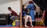 REPUBLIKA.CO.ID, BANDUNG -- Sejumlah atlet dan ofisial dari berbagai cabang olahraga menjalani tahap observasi usai disuntik vaksin Covid-19 di Sport Jabar Arcamanik, Jalan Pacuan Kuda, Kota Bandung, Senin (5/4).