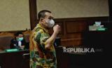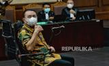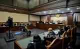 Terpidana kasus cessie Bank Bali Djoko Tjandra menjalani sidang putusan dalam perkara dugaan suap kepada jaksa dan perwira tinggi Polri serta pemufakatan jahat, di Pengadilan Tipikor, Jakarta, Senin (5/4). Republika/Thoudy Badai (FOTO : Republika/Thoudy Badai)