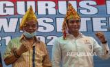 Wakil Ketua Umum Kamar Dagang dan Industri (KADIN) Indonesia Bidang Organisasi, Keanggotaan, dan Pemberdayaan Daerah Anindya Bakrie (kanan) berpose bersama Gubernur Sulawesi Tengah terpilih Rusdi Mastura (kiri) usai menyampaikan pokok-pokok pikirannya jika terpilih sebagai Ketua Umum Kadin Indonesia periode 2021-2026 pada diskusi bersama sejumlah pengusaha di Palu, Sulawesi Tengah, Selasa (6/4/2021). KADIN Indonesia mulai menjaring calon ketua umum untuk memimpin organisasi para pengusaha tersebut lima tahun ke depan yang akan digelar pada Juni 2021 mendatang. ANTARAFOTO/Basri Marzuki/wsj. (FOTO : ANTARAFOTO)