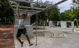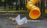Wahana permainan anak yang belum boleh digunakan di Taman Puring, Jakarta, Selasa (6/4). Taman Puring kembali dibuka di tengah masa Pemberlakuan Pembatasan Kegiatan Masyarakat (PPKM) Mikro, sebanyak tiga hutan kota dan 25 taman kota di DKI Jakarta telah dibuka kembali untuk umum. (FOTO : Republika/Putra M. Akbar)