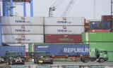 REPUBLIKA.CO.ID, JAKARTA -- Suasana aktivitas bongkar muat peti kemas di Pelabuhan Tanjung Priok, Jakarta, Selasa (6/4). Wakil Presiden Ma'ruf Amin optimis pertumbuhan ekonomi Indonesia akan berada di kisaran 4,5 persen hingga 5,3 persen pada tahun 2021 seiring berjalannya program vaksinasi COVID-19 dan dukungan fiskal pemerintah melalui program Pemulihan Ekonomi Nasional (PEN).