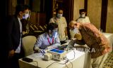 Petugas mengoperasikan alat Genose C19 pada acara Tokoh Perubahan Republika 2020 di Jakarta, Senin (5/4). Republika memberikan penghargaan kepada lima tokoh dalam gelaran malam Anugerah Tokoh Perubahan 2020 dengan tema Hikmah Kebersamaan Untuk Bangkit dari Pandemi. Republika/Putra M. Akbar (FOTO : Republika/Putra M. Akbar)
