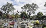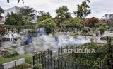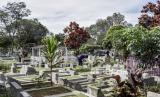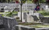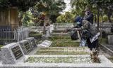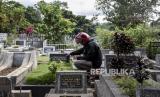Warga berdoa di makam keluarganya di Tempat Pemakaman Umum (TPU) Sirnaraga, Jalan Pajajaran, Kota Bandung, Rabu (7/4). Sepekan jelang datangnya bulan suci Ramadhan, umat muslim melakukan ziarah kubur untuk mendoakan keluarga serta kerabat yang sudah wafat. (FOTO : REPUBLIKA/ABDAN SYAKURA)