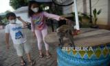 Sejumlah anak bermain dengan monyet di ruang edukasi anak di halaman Kantor Kelurahan Karet, Jakarta, Rabu (7/4). Ruang terbuka yang berkonsep kebun binatang mini (mini zoo) ini memiliki sejumlah koleksi hewan peliharaan seperti kelinci, burung dan ikan hias. Adanya mini zoo tersebut berfungsi sebagai ruang interaksi serta sarana edukasi bagi warga. (FOTO : Prayogi/Republika.)