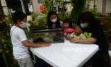 Sejumlah anak memanfaatkan fasilitas ikan terapi di ruang edukasi anak di halaman Kantor Kelurahan Karet, Jakarta, Rabu (7/4). Ruang terbuka yang berkonsep kebun binatang mini (mini zoo) ini memiliki sejumlah koleksi hewan peliharaan seperti kelinci, burung dan ikan hias. Adanya mini zoo tersebut berfungsi sebagai ruang interaksi serta sarana edukasi bagi warga. (FOTO : Prayogi/Republika.)