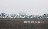 Kawanan burung kuntul putih (babulcus ibis) terbang di atas kawasan landfill baru Tempat Pembuangan Akhir (TPA) Jabon, Sidoarjo, Jawa Timur, Rabu (7/4/2021). Kementerian Pekerjaan Umum dan Perumahan Rakyat (PUPR) menyelesaikan revitalisasi Tempat Pembuangan Akhir (TPA) sampah dengan mengembangkan penimbunan sampah terbuka (open dumping) dan pembangunan landfill baru seluas 5,89 hektar dengan kapasitas 1.650.000 m3. (FOTO : Antara/Umarul Faruq)