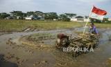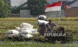 REPUBLIKA.CO.ID, Petani membawa karung berisi hasil panen padi di areal persawahan Desa Margasari, Karawang, Jawa Barat, Rabu (7/4). Kementerian Pertanian terus berupaya untuk menstabilkan harga gabah dengan menyerap gabah petani sesuai Harga Pembelian Pemerintah (HPP) guna menjamin stok beras nasional serta meningkatkan kesejahteraan petani.