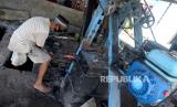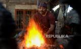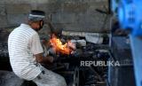 Pande besi menempa peralatan pertanian di sentra pande besi Bendungan, Kulonprogo, Yogyakarta, Kamis (8/4). Kini selain sebagian pande besi sudah menggunakan alat penempa otomatis. Namun, masih ada yang menggunakan cara tradisional. Peralatan pertanian seperti sabit, bendi, dan pisau dijual untuk pasar lokal dan pasar Jawa Tengah. Harga peralatan mulai dari Rp 60 ribu Rp 200 ribu tergantung jenisnya. (FOTO : Republika/Wihdan Hidayat)