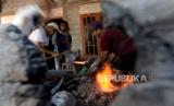 Pande besi membuat peralatan pertanian di sentra pande besi Bendungan, Kulonprogo, Yogyakarta, Kamis (8/4). Kini selain sebagian pande besi sudah menggunakan alat penempa otomatis. Namun, masih ada yang menggunakan cara tradisional. Peralatan pertanian seperti sabit, bendi, dan pisau dijual untuk pasar lokal dan pasar Jawa Tengah. Harga peralatan mulai dari Rp 60 ribu Rp 200 ribu tergantung jenisnya. (FOTO : Republika/Wihdan Hidayat)