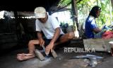 Pande besi mengasah peralatan pertanian di sentra pande besi Bendungan, Kulonprogo, Yogyakarta, Kamis (8/4). Kini selain sebagian pande besi sudah menggunakan alat penempa otomatis. Namun, masih ada yang menggunakan cara tradisional. Peralatan pertanian seperti sabit, bendi, dan pisau dijual untuk pasar lokal dan pasar Jawa Tengah. Harga peralatan mulai dari Rp 60 ribu Rp 200 ribu tergantung jenisnya. (FOTO : Republika/Wihdan Hidayat)