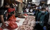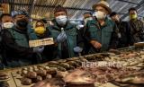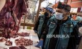 REPUBLIKA.CO.ID, BANDUNG -- Wali Kota Bandung Oded M Danial bersama Wakil Wali Kota Bandung Yana Mulyana meninjau bahan pokok masyarakat di salah satu kios daging di Pasar Sederhana, Jalan Jurang, Kota Bandung, Kamis (8/4).