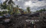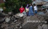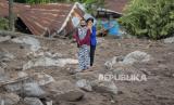 Dua warga berdiri di lokasi permukiman yang tertimbun tanah longsor di Desa Nelelamadike, Ile Boleng, Kabupaten Flores Timur, Nusa Tenggara Timur (NTT), Kamis (8/4/2021). Sebanyak 55 orang meninggal, satu orang masih dalam pencarian, dan ratusan orang mengungsi akibat tanah longsor dari Gunung Ile Boleng pada Minggu (4/4). (FOTO : ADITYA PRADANA PUTRA/ANTARA )