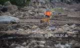 Petugas dan anjing pelacak mencari korban hilang dalam bencana tanah longsor di Desa Nelelamadike, Kecamatan Ile Boleng, Kabupaten Flores Timur, Nusa Tenggara Timur (NTT), Kamis (8/4/2021). Hingga hari kelima pascabencana banjir dan tanah longsor di Flores Timur, pencarian korban hilang semakin digencarkan dengan mengerahkan lebih banyak alat berat, jumlah personel tim gabungan, dan anjing pelacak. (FOTO : ADITYA PRADANA PUTRA/ANTARA )