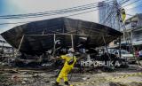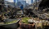 REPUBLIKA.CO.ID, JAKARTA -- Suasana lapak dan kios yang hangus pasca kebakaran di Pasar Kambing, Tanah Abang, Jakarta, Jumat (9/4).