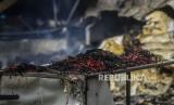 Cabai yang hangus pasca kebakaran di Pasar Kambing, Tanah Abang, Jakarta, Jumat (9/4). Sebanyak 136 lapak dan 40 kios pedagang terbakar yang diduga akibat korsleting listrik dan tidak ada korban jiwa dalam peristiwa tersebut. Selanjutnya, Pemerintah Provinsi DKI Jakarta akan menata ulang pasar tersebut. Republika/Putra M. Akbar (FOTO : Republika/Putra M. Akbar)