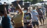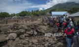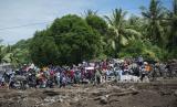 REPUBLIKA.CO.ID, FLORES TIMUR -- Sejumlah warga menanti kedatangan Presiden Joko Widodo yang akan meninjau lokasi tanah longsor di Desa Nelelamadike, Ile Boleng, Kabupaten Flores Timur, Nusa Tenggara Timur (NTT), Jumat (9/4/2021).