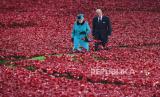 Ratu Elizabeth II bersama Pangeran Philip, Duke of Edinburgh, di antara bunga poppies di pemakaman tertara Inggris yang gugur pada Perang Dunia I di London, (16/10/2014). (FOTO : EPA-EFE/ANDY RAIN)