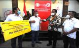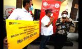 Penyerahan secara simbolis bantuan corporate social reaponsibility (CSR) senilai Rp 500 juta kepada Ketua Ikatan Keluarga Besar (IKB) Masyarakat Nusa Tenggara Timur (NTT)-Flobamora yang berada di Denpasar, Bali, Yuzdi Diaz, Jumat (9/4). (FOTO : Dok. BTN)