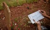 REPUBLIKA.CO.ID, JAKARTA -- Warga berziarah di makam khusus Covid-19 di Taman Makam Umum Bambu Apus, Jakarta Timur, Sabtu (10/4). Kegiatan tersebut dilakukan dalam rangka menyambut bulan suci Ramadhan 1442 Hijriah.