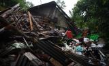 Warga mengumpulkan barang berharga miliknya di antara reruntuhan rumah yang rubuh akibat gempa di Desa Kali Uling, Lumajang, Jawa Timur, Ahad (11/4/2021). Sekitar ratusan rumah warga di wilayah itu rusak akibat gempa bermagnitudo 6,1 SR yang terjadi di Kabupaten Malang pada Sabtu (10/4). (FOTO : ANTARA /Zabur Karuru)