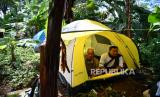 Warga beristirahat di tenda yang dibangun di sekitar rumahnya yang rubuh akibat gempa di Desa Kali Uling, Lumajang, Jawa Timur, Ahad (11/4/2021). Sekitar ratusan rumah warga di wilayah itu rusak akibat gempa bermagnitudo 6,1 SR yang terjadi di Kabupaten Malang pada Sabtu (10/4). (FOTO : ANTARA/Zabur Karuru/rwa.)