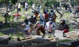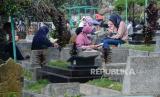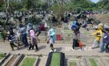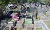 Warga melakukan ziarah kubur menjelang Ramadhan 1442 di Tempat Pemakaman Umum (TPU) Cikutra, Kota Bandung, Ahad (11/4). Tidak seperti saat awal pandemi Covid-19 tahun lalu, jelang Ramadhan kali ini peziarah yang mendatangi TPU Cikutra cukup ramai. Puasa Ramadan 2021 menurut perhitungan hisab 1442 H jatuh pada tanggal 13 April 2021. (FOTO : Edi Yusuf/Republika)