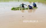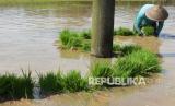 REPUBLIKA.CO.ID, NGAWI -- Petani mengamankan bibit padi agar tak hanyut terbawa air saat banjir di Kwadungan, Ngawi, Jawa Timur, Ahad (11/4/2021). Banjir luapan Sungai Madiun merendam sejumlah desa di wilayah tersebut dan mengakibatkan sejumlah ruas jalan dan puluhan hektare sawah yang memasuki musim tanam padi terendam.