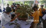 REPUBLIKA.CO.ID, BATANG -- Peserta mengamati cara merawat dan membentuk pohon bonsai di Pendopo Kabupaten Batang, Jawa Tengah, Minggu (11/4). Demo bonsai tersebut untuk memberi informasi bagi penggemar bonsai pemula tentang tahapan membuat bonsai sesuai ketentuan agar tumbuh mengikuti karakter pohon, pembentukan pohon, pengurangan ranting dan lainnya.
