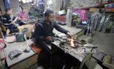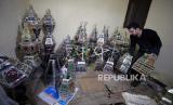 Pengrajin Mesir membuat lentera Ramadhan tradisional, yang disebut Fanous, di sebuah lokakarya di Kairo, Mesir, Ahad (11/4). (FOTO : EPA-EFE/KHALED ELFIQI)