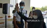 REPUBLIKA.CO.ID, BANDA ACEH -- Peserta melewati pemeriksaan suhu badan sebelum mengikuti Ujian Tulis Berbasis Komputer (UTBK) jalur Seleksi Bersama Masuk Perguruan Tinggi Nasional (SBMPTN) di Universitas Syiah Kuala, Banda Aceh, Aceh, Senin (12/4). UTBK jalur SBMPTN yang diikuti sekitar 8.900 peserta berlangsung hingga 16 April itu digelar dengan penerapan protokol kesehatan secara ketat guna mencegah penyebaran COVID-19.