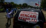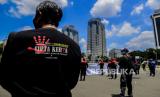 REPUBLIKA.CO.ID, JAKARTA -- Sejumlah massa buruh dari Konfederasi Serikat Pekerja Indonesia (KSPI) melaksanakan aksi di kawasan Patung Kuda, Jakarta, Senin (12/4). Pada aksi tersebut mereka menutut pembayaran Tunjangan Hari Raya (THR) 2021 secara penuh, meminta Mahkamah Konstitusi membatalkan Omnibus Law, pemberlakuan upah minimum sektoral kabupaten/kota (UMSK) untuk tahun ini dan mendesak Kejaksaan Agung mengusut dugaan korupsi BPJS Ketenagakerjaan.