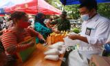 REPUBLIKA.CO.ID, JAKARTA -- Mobil penjual pangan Kementan menjual beberapa jenis bahan makanan dalam Gelar Pangan Murah (GPM) yang dilaksanakan oleh kementerian pertanian di Rusunawa Jatirawasari, Jakarta, Senin (12/4). Kegiatan Gelar Pangan Murah (GPM) ini ditujukan untuk memperkuat dan mempermudah akses masyarakat terhadap bahan pangan yang berkualitas dan terjangkau menjelang Ramadhan.