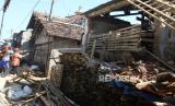 REPUBLIKA.CO.ID, MAJANGTENGAH -- Warga dan relawan merobohkan rumah korban gempa di Majangtengah, Malang, Jawa Timur, Senin (12/4/2021). Hal tersebut dilakukan untuk mengantisipasi jatuhnya korban lagi karena banyak bangunan korban gempa sudah tidak layak huni.