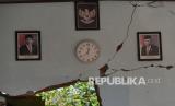 REPUBLIKA.CO.ID, LUMAJANG -- Dinding Posyandu rusak akibat gempa di Desa Kaliuling, Lumajang, Jawa Timur, Senin (12/4).