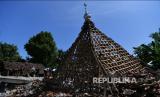 Warga mengamati rumahnya yang rubuh akibat gempa di Desa Kali Uling, Lumajang, Jawa Timur, Ahad (11/4/2021). Sekitar ratusan rumah warga di wilayah itu rusak akibat gempa M 6,1 yang terjadi di Kabupaten Malang pada Sabtu (10/4). (FOTO : ANTARA/Zabur Karuru)