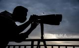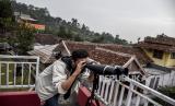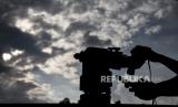 REPUBLIKA.CO.ID, BANDUNG -- Petugas melakukan pemantauan hilal (rukyatul hilal) menggunakan teleskop di Imah Noong, Lembang, Kabupaten Bandung Barat, Senin (12/4). Hasil pemantauan hilal 1 Ramadhan 1442 H di kawasan tersebut tidak tampak karena terhalang cuaca yang berawan.