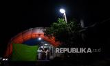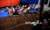 Warga bersiap-siap melaksanakan shalat tarawih pertama di Desa Kaliuling, Lumajang, Jawa Timur, Senin (12/4/2021). Shalat tarawih tersebut dilaksanakan di tenda darurat yang dibangun warga di halaman rumahnya yang rusak akibat gempa pada Sabtu (10/4). (FOTO : Antara/Zabur Karuru)