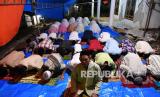REPUBLIKA.CO.ID, LUMAJANG -- Warga melaksanakan sholat tarawih pertama Ramadhan 1442 H di Desa Kaliuling, Lumajang, Jawa Timur, Senin (12/4/2021). Sholat tarawih tersebut dilaksanakan di tenda darurat yang dibangun warga di halaman rumahnya yang rusak akibat gempa pada Sabtu (10/4).