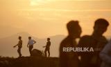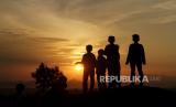 REPUBLIKA.CO.ID, GOWA -- Sejumlah bocah menikmati suasana fajar pertama bulan Ramadhan di Bukit Samata, Kabupaten Gowa, Sulawesi Selatan, Selasa (13/4/2021). Bukit tersebut ramai dikunjungi remaja hingga anak-anak untuk menyaksikan matahari terbit pertama pada bulan Ramadhan 1442 H.