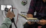 REPUBLIKA.CO.ID, BANDUNG -- Ustaz Abdurahim Dany memberikan tausiyah Ramadhan secara daring di Masjid Haur Kuning, Jalan Naripan, Kota Bandung, Selasa (13/4). Komunitas Ojol Mengaji berinisiatif menggelar pengajian dan tausiyah di bulan suci Ramadhan secara daring untuk mencegah kerumunan serta meminimalisir penyebaran Covid-19 di tempat ibadah.
