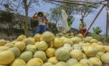 REPUBLIKA.CO.ID, BATANG -- Petani memasukkan buah melon hasil panen di Warungasem, Kabupaten Batang, Jawa Tengah, Selasa (13/4). Menurut petani setempat, permintaan buah melon dari pedagang meningkat 50 persen pada bulan ramadhan daripada hari biasa, dengan sekali panen mampu mencapai 2,5 ton yang dijual dengan harga Rp10 ribu per kilogram.