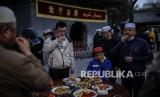 REPUBLIKA.CO.ID, BEIJING -- Umat Muslim berbuka puasa bersama di hari pertama bulan puasa Ramadhan di Masjid Niujie di kota Beijing, Cina, Selasa (13/4).