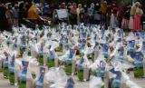 REPUBLIKA.CO.ID, ACEH BESAR -- Warga antre mengambil paket sembako dari masyarakat muslim Eropa dan Turki di komplek SMA Modal Bangsa, Aceh Besar, Aceh, Rabu (14/4/2021). Masyarakat muslim Eropa dan Turki yang difasilitisi Yayasan Kafalah Indonesia dan alumni SMA Modal Bangsa menyalurkan sebanyak 2.222 paket sembako untuk warga kurang mampu guna memenuhi kebutuhan Ramadhan.