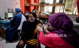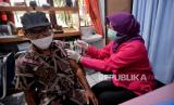 REPUBLIKA.CO.ID, JAKARTA -- Pemprov DKI terus menjalanankan program vaksinasi covid-19 dosis satu di Puskesmas Kelurahan Petojo, Jakarta Pusat, Rabu (14/4). Pemprov DKI Jakarta menargetkan 95 persen warga kelompok lanjut usia di DKI Jakarta sudah melakukan vaksinasi covid-19 sebelum Hari Raya Idul Fitri 1442 Hijiriah dengan target jumlah vaksinasi lansia sebanyak 911.631 orang.