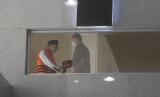 Petugas memasangkan borgol kepada tersangka mantan Kepala Badan Informasi Geospasial (BIG) Priyadi Kardono usai pemeriksaan di Gedung Merah Putih KPK, Jakarta, Rabu (14/4/2021). Priyadi diperiksa terkait kasus dugaan korupsi pengadaan Citra Satelit Resolusi Tinggi pada Badan Informasi Geospasial (BIG) yang bekerja sama dengan LAPAN tahun 2015. (FOTO : ANTARA/Akbar Nugroho Gumay)