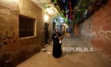 Dalal Abdel Kader besiap sebelum menabuh gendang untuk membangunkan warga untuk bersahur. Setiap hari dia berjalan mengelilingi lingkungan tempatnya tinggal sejak tengah malam hingga menjelang tiba saat bersahur. (FOTO : REUTERS/Hayam Adel)