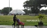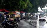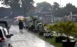 Jalanan lengang saat sore imbas di Alun-alun Selatan, Yogyakarta, Rabu (14/4). Suasana warga yang menunggu berbuka puasa atau ngabuburit terlihat sepi imbas hujan pada sore hari. Biasanya Alun-alun Selatan menjadi salah satu favorit warga untuk ngabuburit. (FOTO : Wihdan Hidayat / Republika)