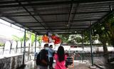 Warga berteduh imbas hujan saat ngabuburit di Alun-alun Selatan, Yogyakarta, Rabu (14/4). Suasana warga yang menunggu berbuka puasa atau ngabuburit terlihat sepi imbas hujan pada sore hari. Biasanya Alun-alun Selatan menjadi salah satu favorit warga untuk ngabuburit. (FOTO : Wihdan Hidayat / Republika)