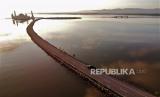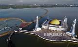 REPUBLIKA.CO.ID, KENDARI -- Foto udara suasana Masjid Al Alam Kendari di tengah Teluk Kendari, Sulawesi Tenggara, Kamis (15/4). Masjid Al Alam tersebut menjadi salah satu destinasi wisata religi favorit di Kendari.